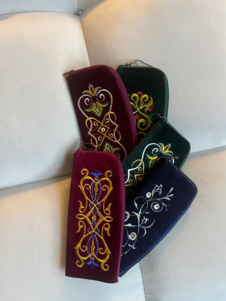 Выполнены из бархата, украшены национальной вышивкой.
