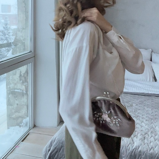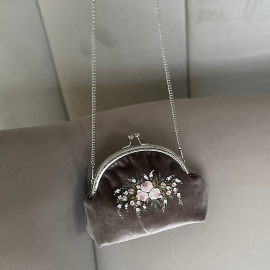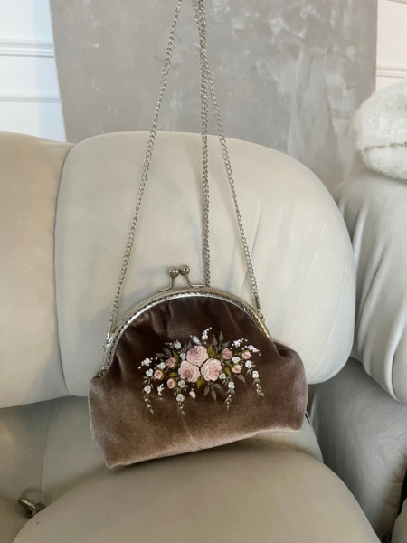 Сумочка сшита из велюра, расшита цветочной вышивкой.