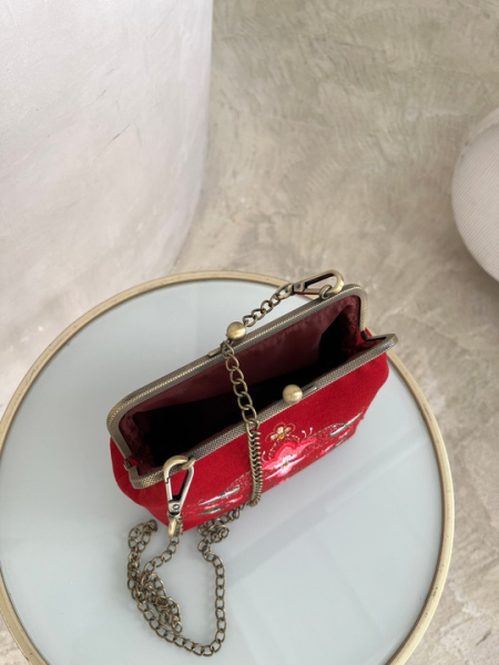 Красная сумка из велюра с плотными стенками. Хорошо держит форму.