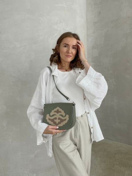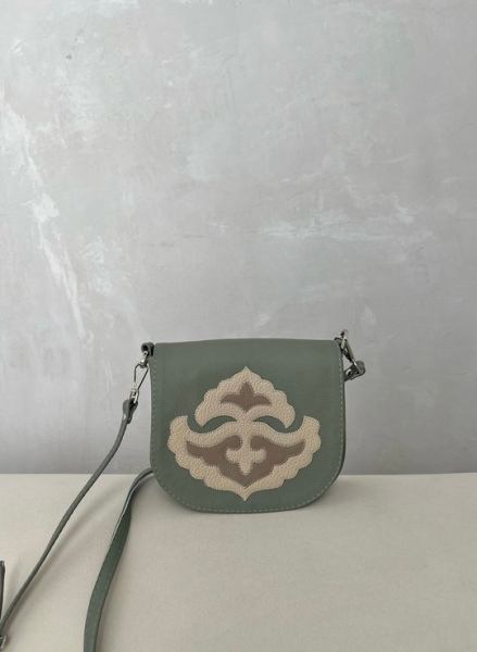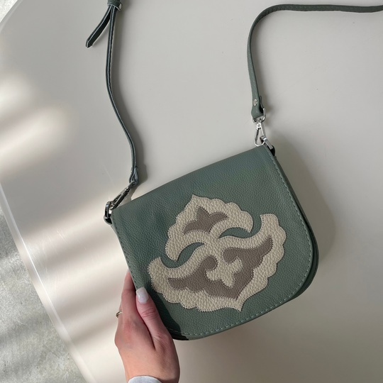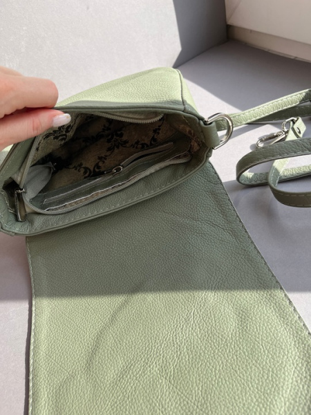 Сумка из натуральной кожи в цвете эвкалипт.